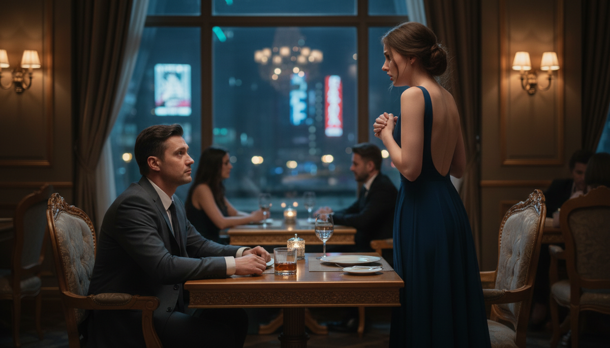 Когда она вошла, светлый зал ресторана наполнился её красотой: в вечернем платье, полной уверенности и ожидания. Однако, увидев его, улыбка исчезла, а вместо неё на лице отразилось ужас и стыд. В этот момент его мир и её мир столкнулись в самом неожиданном развороте событий.