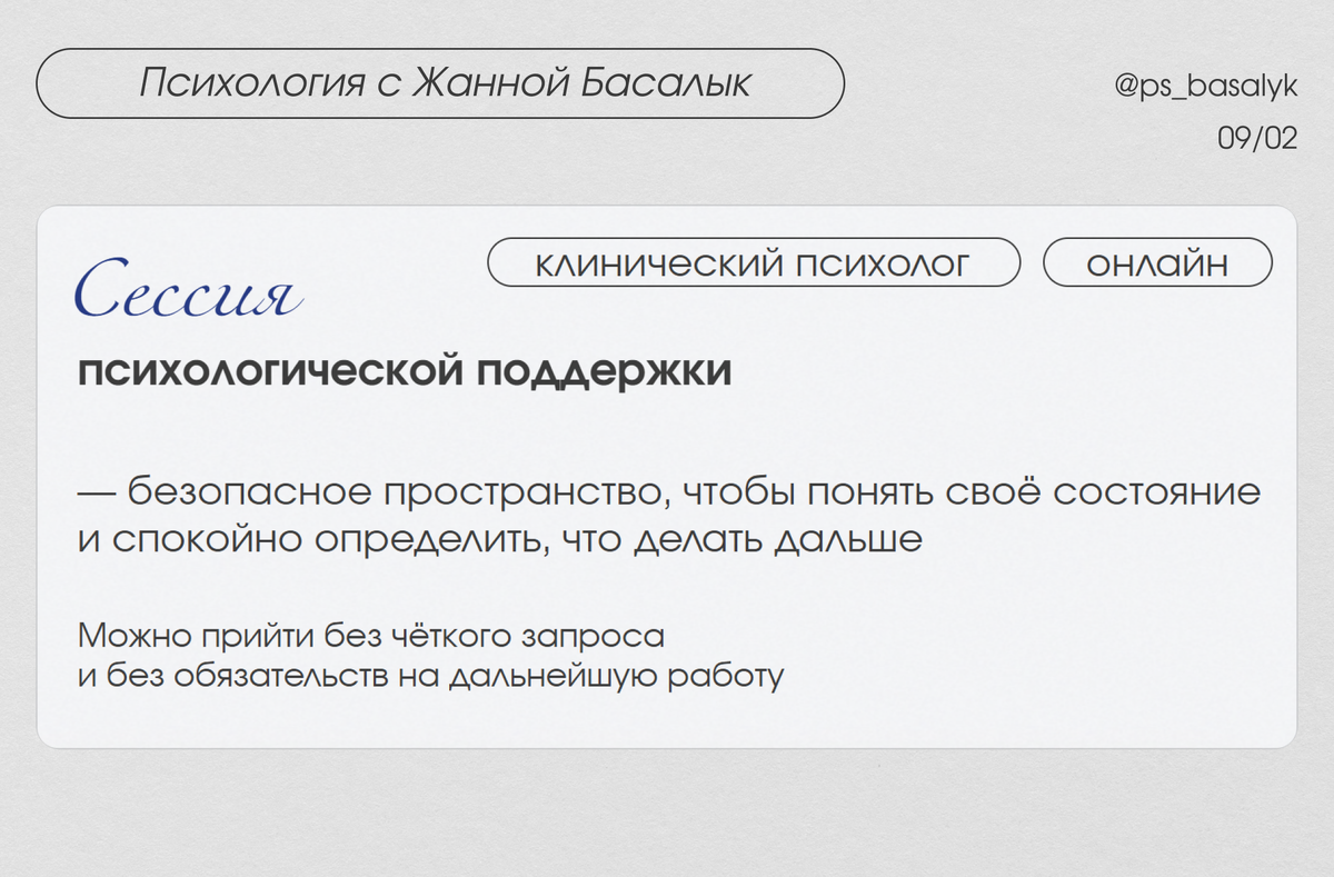 Если вы хотите спокойно разобраться в своём состоянии без давления, сессия психологической поддержки может стать отличным первым шагом.