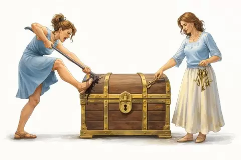 Важно задаться вопросом: каким инструментом вы пользуетесь в конфликтных ситуациях? Если ваше поведение похоже на удары топором, стоит остановиться и подумать, как можно подойти к решению проблемы иначе. Возможно, требуются новые навыки или помощь извне, чтобы научиться открывать замок на вашем собственном сундуке.