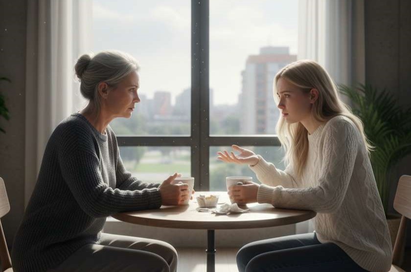 Они уселись за столик. Между ними стояли чашки с остывшим кофе, а атмосфера напряжения витала в воздухе.