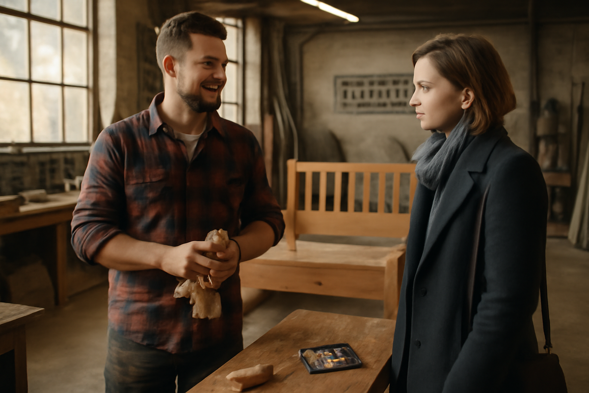 Вдохновленная, она решает встретиться с ним. Мастерская впечатлила ее своими размерами и атмосферой. Максим рассказывал о своей работе с гордостью, у него были планы на будущее и команда, которая его поддерживала.