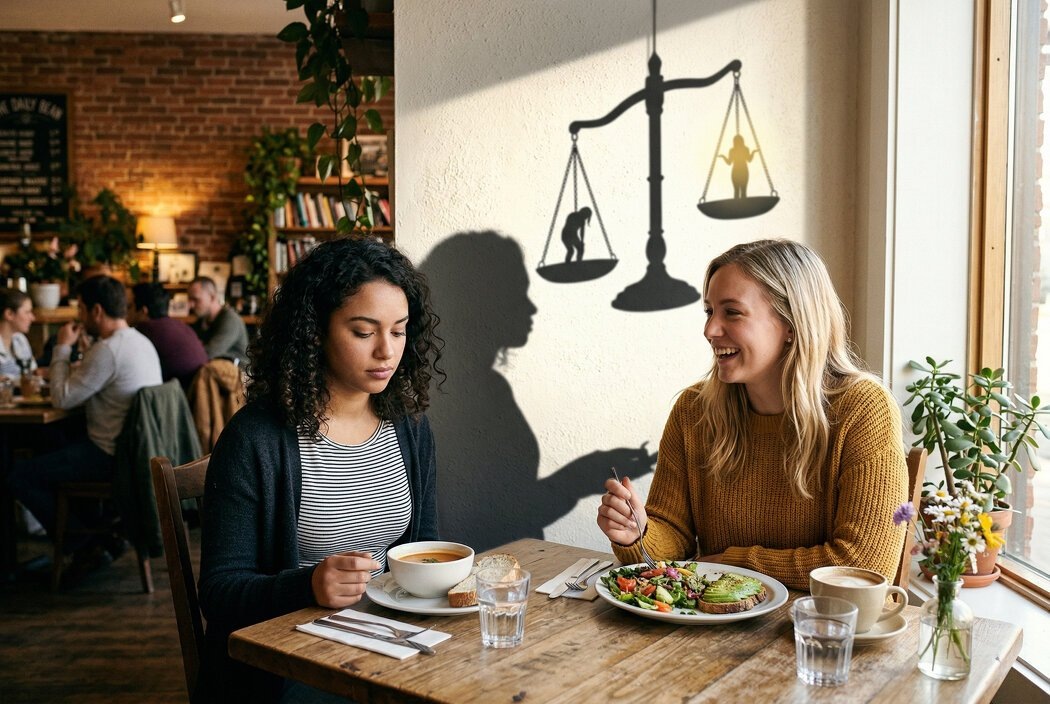 Может, вам знакомо это состояние? Вы обедаете с подругой, обменивались легкими разговорами, но взгляд невольно оказывается на ее тарелке. Вы не хотели этого, но в мозгу происходит мгновенное сравнение. У нее больше еды. И вот это мимолетное чувство облегчения приносит с собой тишину и спокойствие. В такие моменты, когда кто-то делится своими проблемами с набором веса, внутренний голос может нашептать: «Я лучше».